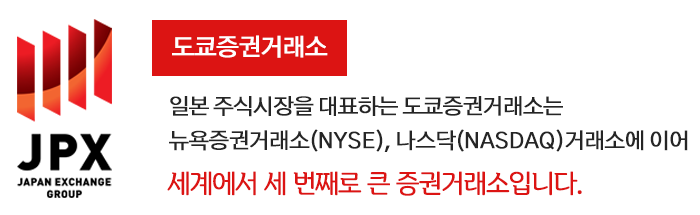 미국의 NASDAQ이나 한국의 KOSDAQ과 유사한 JASDAQ시장도 있죠. (예전에는 일본 제2의 도시인 오사카에 오사카증권거래소도 있었지만, 2013년 7월 도쿄증권거래소에 통합되었습니다.)