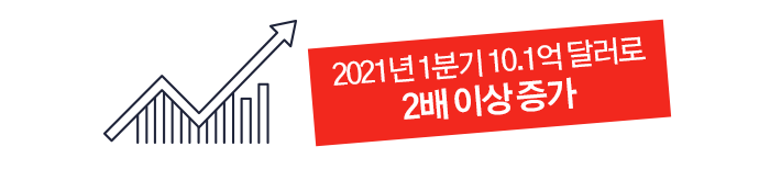 2020년 4분기에 일본주식 결제금액이 4.6억 달러였는데 비해, 2021년 1분기에는 10.1억 달러로 2배 이상 증가했습니다.