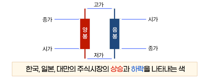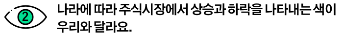 한국, 일본, 대만의 주식시장에서는 이렇게 상승을 빨간색, 하락을 파란색으로 표시합니다