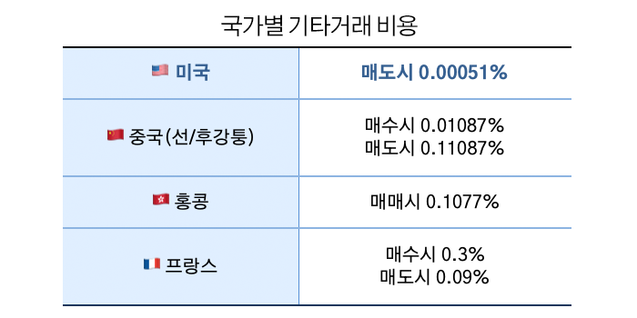 게다가 해외주식 거래 시에는 매매 수수료 외에도 국가별 기타거래 비용이 추가됩니다.