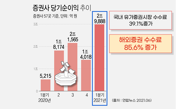 금융감독원의 최근 발표에 따르면, 2021년 1분기의 증권회사 당기순이익이 3조 원에 달한다고 합니다.