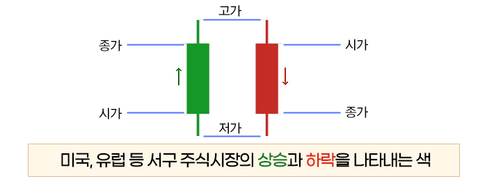 미국 등 서구 주식시장에서 상승을 뜻하는 컬러가 초록색이고, 하락을 의미하는 컬러가 빨간색이기 때문입니다.
