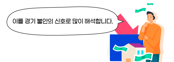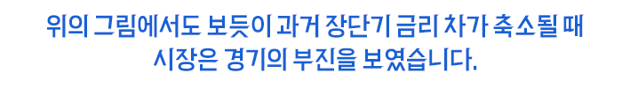 즉, 보통 경기에 대한 기대감을 선반영하는 채권시장을 보면 일반적으로 경기가 나빠질 때 장단기 격차가 축소되고, 경기가 좋아질 때 장단기 금리차가 확대된다는 걸 알 수 있다는 거죠.