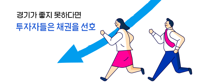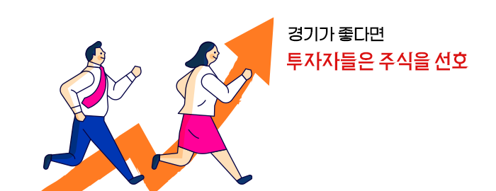 반대로 경기가 좋아지게 된다면 확정된 이자를 주는 채권보다, 회사가 더 많은 수익을 올려 기업가치와 배당이 올라갈 거란 기대감에 주식에 대한 인기가 높아지게 됩니다.