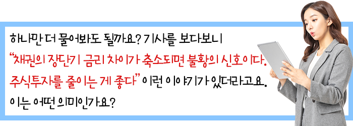 장기적으로 돈을 묶기 힘들다는 판단으로 장기로 투자를 지양하고 단기투자에 몰리게 됩니다. 그에 따라 장기금리는 정체 또는 하향하고 단기금리는 상승하게 됩니다. 그래서 장단기 금리 차이가 축소되는 거죠.