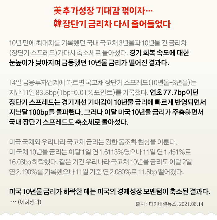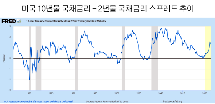 장단기 금리차가 주식시장에 영향을 끼칠 수 있다는 걸 항상 염두에 두고 신중한 투자를 위한 판단에 도움을 주는 지표로 삼는 건 어떨까요?