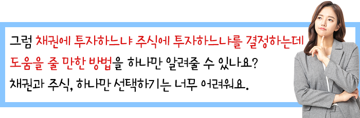 투자자는 주식투자로 돈을 더 벌 수 있을지 채권으로 돈을 더 벌 수 있을지 계산기를 두들겨 수익이 더 좋을 것으로 예상하는 쪽으로 움직여야 하죠.