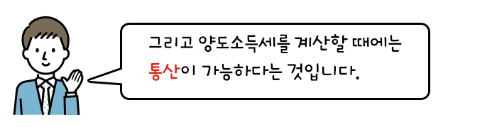 양도소득세는 종합소득세와 별도로 과세하는 분류과세이기 때문입니다.