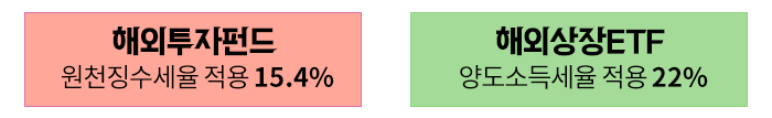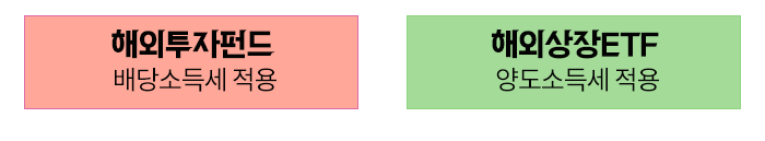 그 이유는 해외에 투자하는 펀드에는 배당소득세를, 해외주식에는 양도소득세를 매기기 때문입니다.