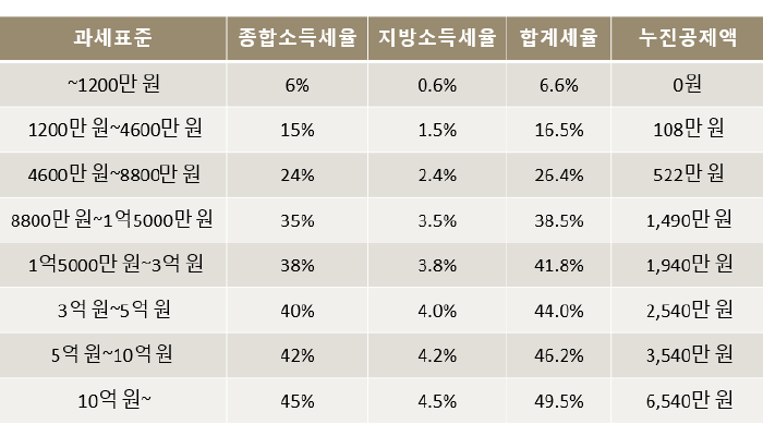 8천만 원에 대해서는 49.5%의 최고세율이 적용된 것입니다.