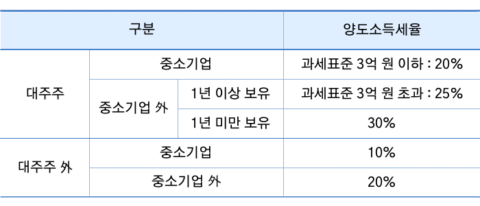 하지만 다시 말하면 소액주주라도 비상장주식이나 해외상장주식을 매매해 양도차익을 거둔 경우에는 양도소득세를 매긴다는 뜻이기도 합니다.