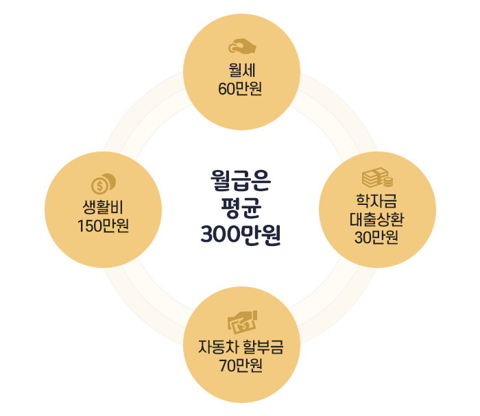 김광일 씨는 알찬 중견기업에 다니고 있는 사원이다. 그의 월급은 평균 300만 원 정도다. 생활비 150만 원, 월세 60만 원, 학자금 대출 상환에 30만 원이 소비되고 있다. 그런데 이번에 월 70만 원이면 할부로 구입 가능하다는 외제차 마케팅에 이끌려 선뜻 계약을 했다.