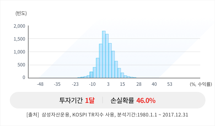 즉, 오늘 사서 내일 팔고, 내일 사서 모레 판다는 이야기입니다. KOSPI에 1980년 1월 1일부터 2017년 12월 31일까지 딱 하루씩만 투자하면 이런 결과가 나옵니다.