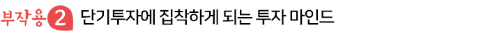 높은 기대수익률을 충족시켜줄 만한 호재성 테마주, 단기 급등주 등만을 노리다 보니, 장기적인 안목이 사라지고 단기에 승부를 보려는 마음에 조급한 매매를 일삼게 됩니다.
