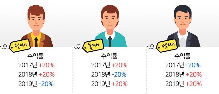 아들들은 ‘3년 중에 2년은 +20% 수익을 냈으니, 한 번 정도 –20%의 손실은 큰 문제가 없을 거야. 난 충분히 후계자가 될 수 있을 거야’라고 자신만만해 했습니다.