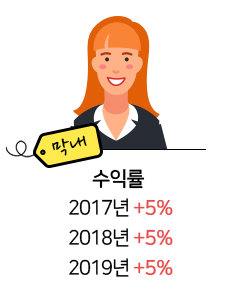 막내딸은 같은 기간, 2017년에도 5%, 2018년에도 5%, 2019년에도 5%의 수익률을 기록했습니다.