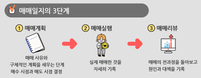 매매일지는 매매계획, 실행, 리뷰의 3단계 과정으로 나누어 작성하는 방법을 따르면 됩니다.