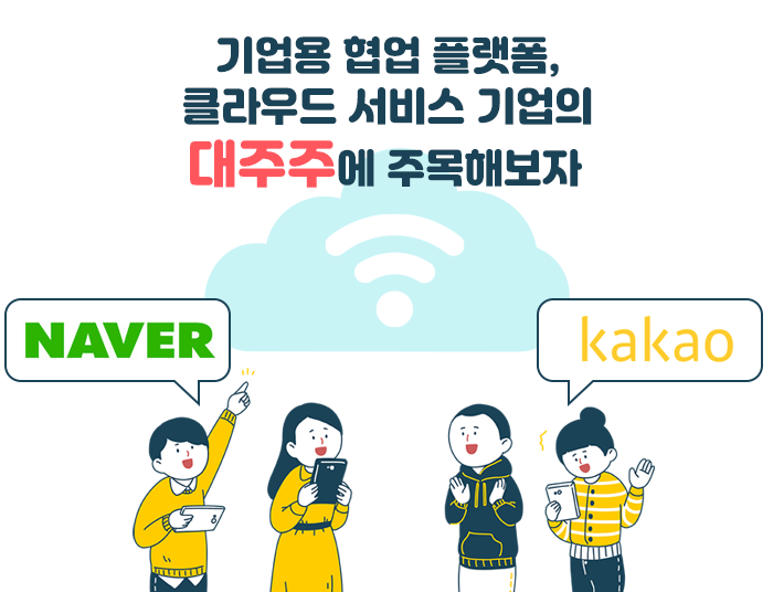 아직 재택근무 관련 솔루션 제공 업체 중 상장된 회사는 없으며 이에 따라 재택근무 관련주를 얘기할 때 직접 관련된 기업을 꼽기는 힘듭니다. 하지만 해당 기업의 대주주인 네이버와 카카오에 대한 투자는 적극적으로 검토해 볼 만한 부분입니다.