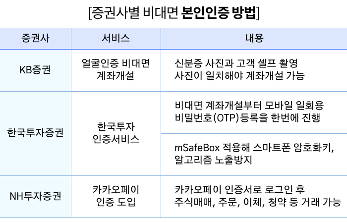 그래서 각 증권회사들은 고객들이 우려하는 인증 문제에 있어서도 만전을 기하고 있습니다. 일례로 KB증권 같은 경우에는 얼굴인증을 통한 비대면 계좌개설도 한다고 합니다. 모두 고객의 안전을 위해서겠지요?