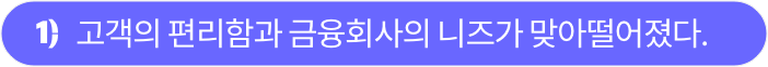 고객들이 나만을 위한 금융서비스를 밀접하고 친근하게 받고 싶어 하는 니즈가 나날이 높아질 뿐만 아니라 금융회사들의 고객 확보 및 저비용 맞춤 서비스가 가능해지기 때문이죠.