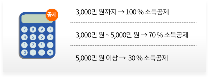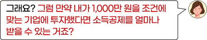 투자금액 3,000만 원까지는 100% 전액 소득공제가 가능합니다.