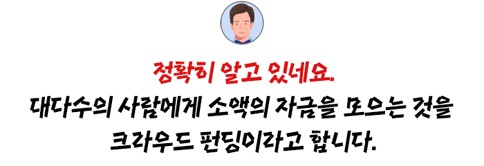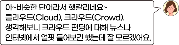 크라우드 펀딩의 크라우드는 군중을 뜻하는 영어 단어인 ‘Crowd’입니다.