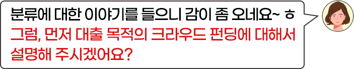 첫 번째는 ‘대출’목적의 크라우드 펀딩,