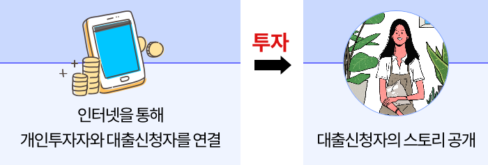 인터넷이나 모바일로 자금 수요자인 대출 신청자와 자금 공급자인 개인투자자를 연결해 주고 있습니다.