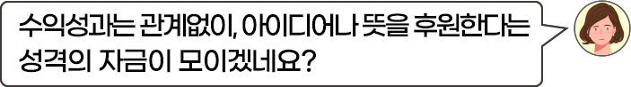딱 봐도 수익을 내지 못할 것으로 예상되는 아이템들이 많아 후원이나 기부 개념의 크라우드 펀딩이라고 부릅니다.