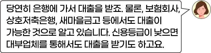 보통 우리가 자금이 필요해 대출을 받으려면 어떻게 하죠?
