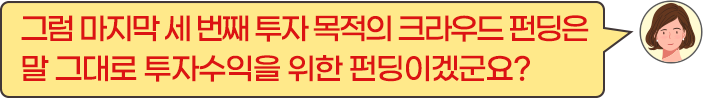 세 번째가 ‘투자’목적의 크라우드 펀딩입니다.