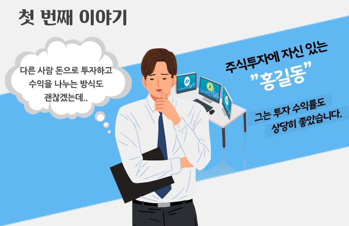 ‘다른 사람의 돈을 굴려주면서 수익을 나누는 것이 좋겠다.’라고 판단한 홍길동은 주변 사람들에게 목돈을 받아 운용해 주고 수익 금액의 일부를 가져가기 시작했습니다.