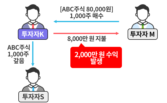이런 거래를 통해 투자자K는 2,000만 원의 수익을 거두게 됩니다.