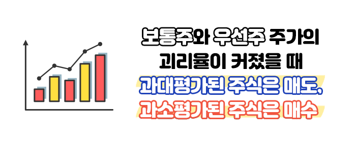 향후 두 주식의 괴리율이 정상적인 수준으로 회귀하면 일종의 무위험차익을 거둘 수 있는 기회를 포착하는 것입니다.