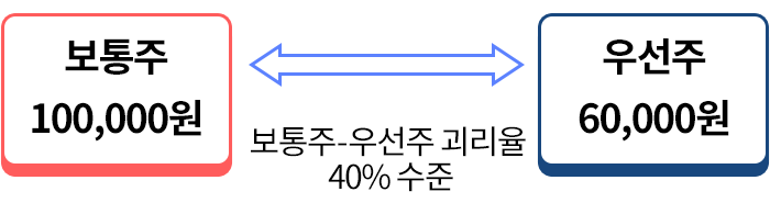 이때 보통주와 우선주의 괴리율은 40% 수준이라고 표현합니다.