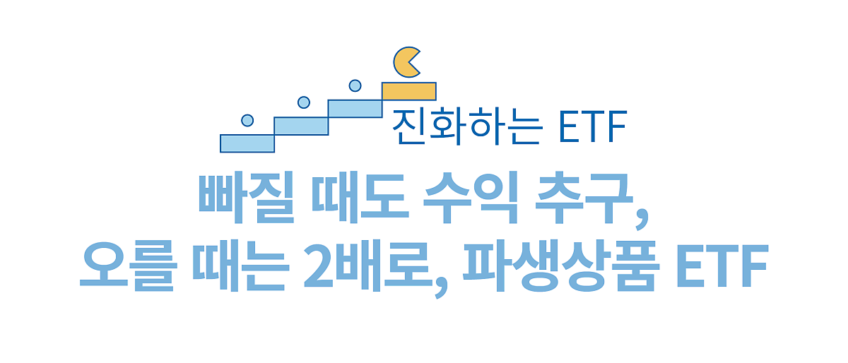 ETF가 추종을 하는 인덱스의 흐름을 100% 따라가는 것이 아니라, 선물을 활용해 150% 또는 200%더 크게 따라가거나 도리어 반대로 가게 하는 상품들이 있다. 레버리지 ETF는 기초지수가 오를 때 ETF 가격은 2배로 오르고 내릴 때에도 2배로 내린다(일일 변동폭 기준). 주식시장이 오르는 게 확실하다 싶으면 단기적으로 이용할 때 더 많은 수익이 가능한 상품이다.