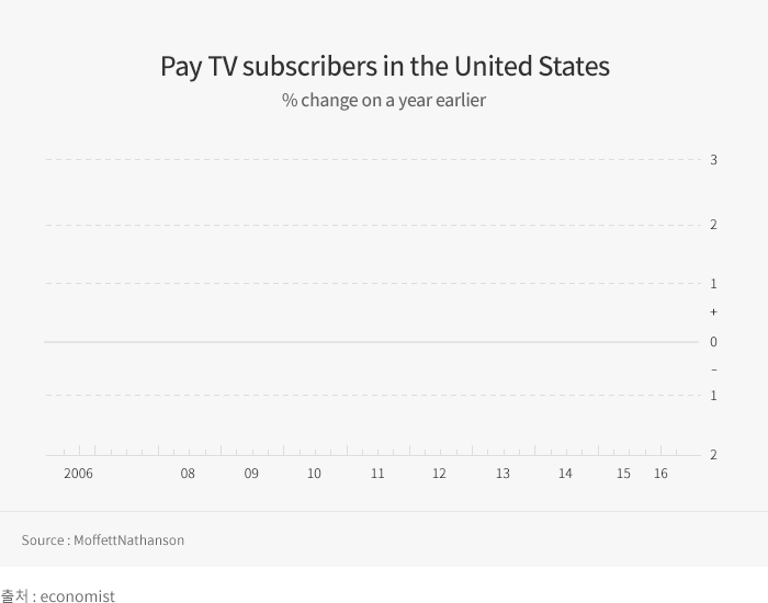 반면 넷플릭스와 아마존이 8~14불 사이의 가격을 들고 나오니 케이블을 잘라버리는 이른바 '코드커팅(code-cutting, 유료방송 해지)' 현상이 나타날 수 밖에 없었던 것입니다.