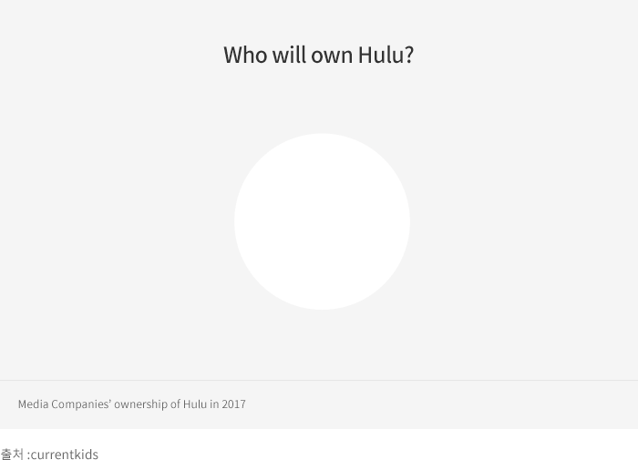 훌루의 지분은 디즈니 30%, 21세기폭스 30%, 컴캐스트 30%, 타임워너(현재 AT&T) 10%로 이루어져 있으며, 최근 디즈니가 폭스를 인수하면서 결론적으로 디즈니가 훌루의 지분 60%를 가져가게 되었습니다.