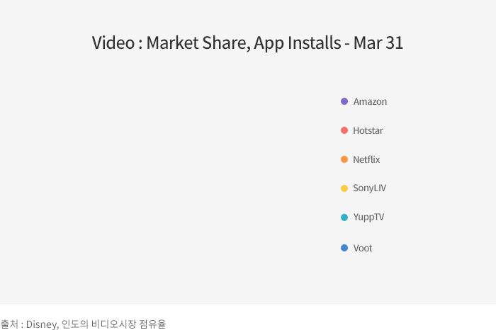 아래는 인도 시장 내에서 스트리밍 기업의 점유율인데, 폭스가 100% 지분을 갖고 있는 핫스타가 인도 시장 내 점유율 70% 가까이 가져가며 이미 어느 정도 서열 정리를 끝낸 상황입니다.