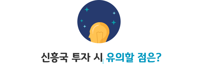 신흥국 투자 시에는 해당 국가의 환율, 금리, 원자재, 정치적인 리스크를 염두에 두어야 합니다.