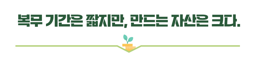 투자는 빨리 시작하는 사람이 유리하기도 하지만 꾸준히 완주하는 사람이 이깁니다. 군 복무를 '기회'로 만드는 선택. 오늘부터 시작해 보는 건 어떨까요?