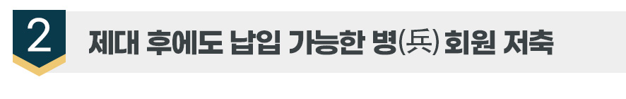 만약 제대 후 장병내일준비적금 만기금을 병(兵) 회원 저축에 납입하게 되는 경우에는 월 한도 150만 원 적용을 받지 않기 때문에 만기 수령액을 그대로 넣을 수도 있습니다.