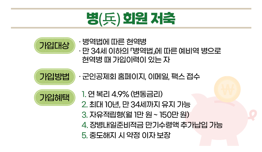 군인공제회 병(兵) 회원 저축은 군인공제회에서 관리하는 상품으로, 현역으로 국방의 의무를 다한 장병들을 위한 복리 저축 상품이에요. 원래는 장교나 부사관들만 가입할 수 있었는데, 이제는 병사들도 가입할 수 있게 되었습니다.