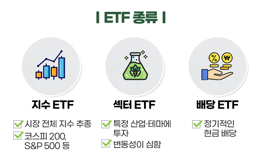지수형보다는 변동성이 좀 크고, 섹터형보다는 안정적인 배당형 ETF도 있어요. 배당형은 배당 많이 주는 기업들만 모은 ETF예요.