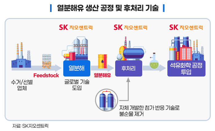 일단, 가장 적극적으로 나서고 있는 곳은 SK지오센트릭입니다. 2025년 완공을 목표로 울산에 열분해유 공장을 짓고 있는데요.
