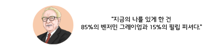 이 두 명의 뛰어난 투자자의 통찰력은 투자 분야의 살아있는 전설 ‘워런 버핏’에게 큰 가르침으로 다가왔으며, 버핏은 두 분을 스승으로 삼으며 다음과 같은 말을 남겼습니다.