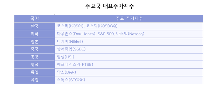 우리나라의 코스피(KOSPI), 코스닥(KOSDAQ)을 비롯해 미국의 다우 존스(Dow Jones), S&P 500, 나스닥(Nasdaq)과 같은 각국의 시장을 대표하는 주가지수들이 있으며, 이러한 지수를 추종하는 인덱스 펀드들이 있습니다. 우리나라 주식시장에도 저렴한 비용으로 거래될 수 있도록 만든 인덱스펀드나 인덱스 ETF(상장지수펀드)를 통해 투자자들도 인덱스 펀드 상품에 쉽게 가입할 수 있습니다.