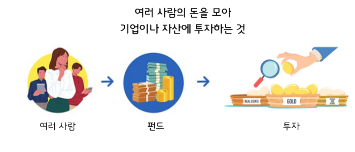 펀드는 여러 사람의 돈을 모아 기업이나 금융상품에 투자하는 것입니다. 주식 1주를 사는 것은 비싸지 않을 수 있지만, 여러 개의 기업과 상품을 동시에 사려면 큰돈이 필요합니다. 펀드는 이렇게 뭉칫돈으로 여러 개의 기업이나 다양한 자산에 투자하며, 적은 돈으로도 펀드에 가입할 수 있고, 수익도 나누어 받을 수 있습니다.