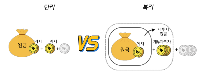 복리 효과란 이자가 원금에 추가되어 그로 인해 발생하는 이자가 다시 원금에 추가되는 것을 반복함으로써 원금이 빠르게 증가하는 현상을 말하며, 주식으로 보면 배당을 계속 재투자하여 수익을 키워나가는 것을 의미합니다.