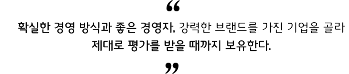 이처럼 버핏은 벤저민 그레이엄, 필립 피셔를 평생 스승으로 삼고 파트너인 찰리 멍거의 조언을 들으며, 몇 개의 좋은 기업을 장기적으로 투자해서 큰 수익을 내는 투자자로 성공하게 됩니다.